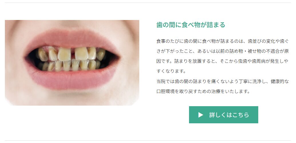 — 「こんなお悩みはありませんか?」で「歯の間に食べ物が詰まる」というキーワードで